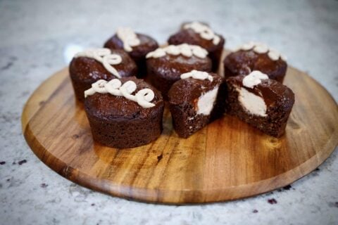 - Spoon mixture into silicone muffin tin or lined muffin tin, making 9 muffins.