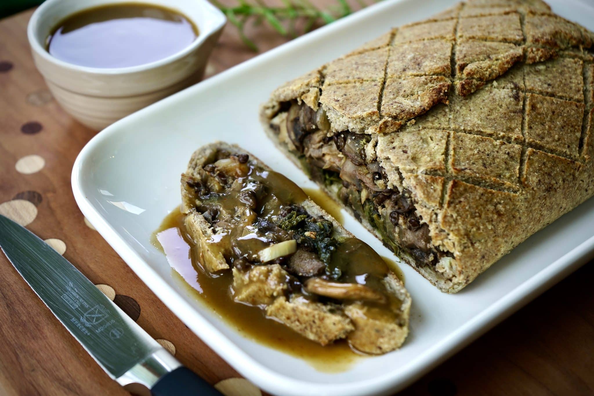 Delight your vegan and non-vegan guests alike with this healthy take on a classic holiday dish. The rich earthy mushroom filling is gently wrapped in a delicate and scrumptious crust then drizzled with a warm succulent gravy. Sure to satisfy and impress, everyone will be clamoring for seconds.